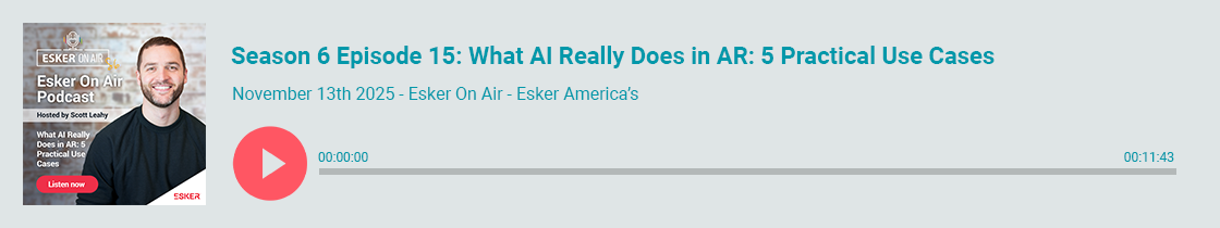 In this episode of Esker On Air, host Scott Leahy welcomes Whitney Thomas, I2C Strategic Solution Manager at Esker, to highlight 5 ways AI supports everyday AR activities — and the real results businesses using AI are experiencing.